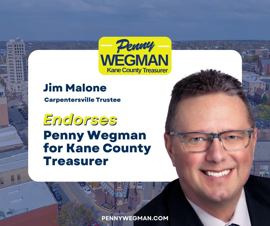 I am thrilled to have the endorsement of Carpentersville Trustee, Jim Malone! Jim understands the value of transparency and respect at every level of government, I am grateful to have his support!