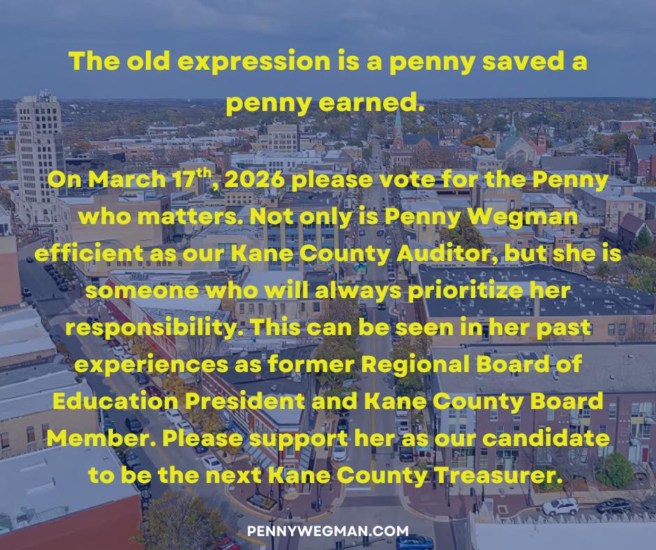 Please join me in supporting Penny Wegman for Kane County Treasurer